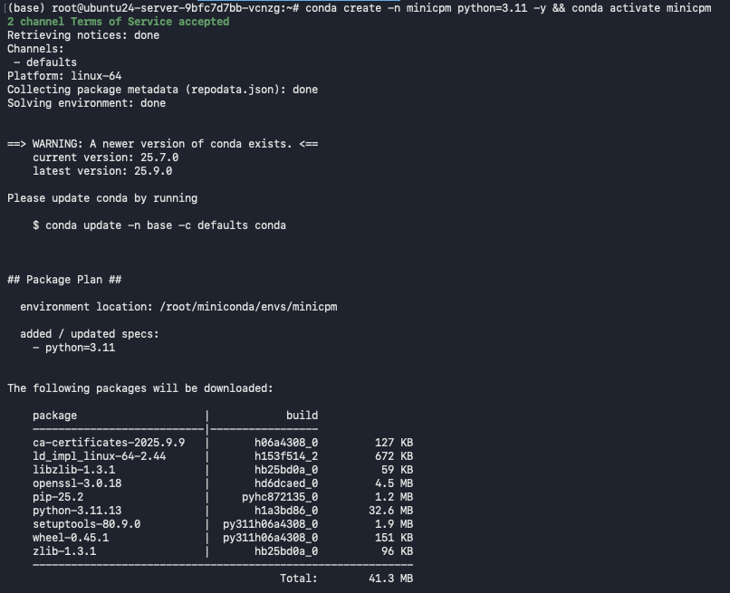 conda create -n minicpm python=3.11 -y && conda activate minicpm