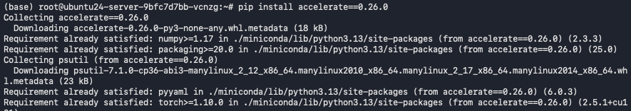 Now we’ll install all necessary packages, PyTorch, transformers, accelerate, and a few utilities.