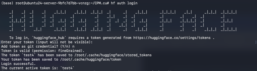When prompted, paste your Hugging Face access token. If you don't have a token yet: